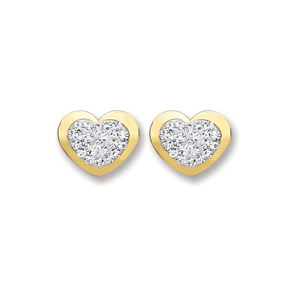/ 9ct Gold Heart Shape with Crsystals Stud