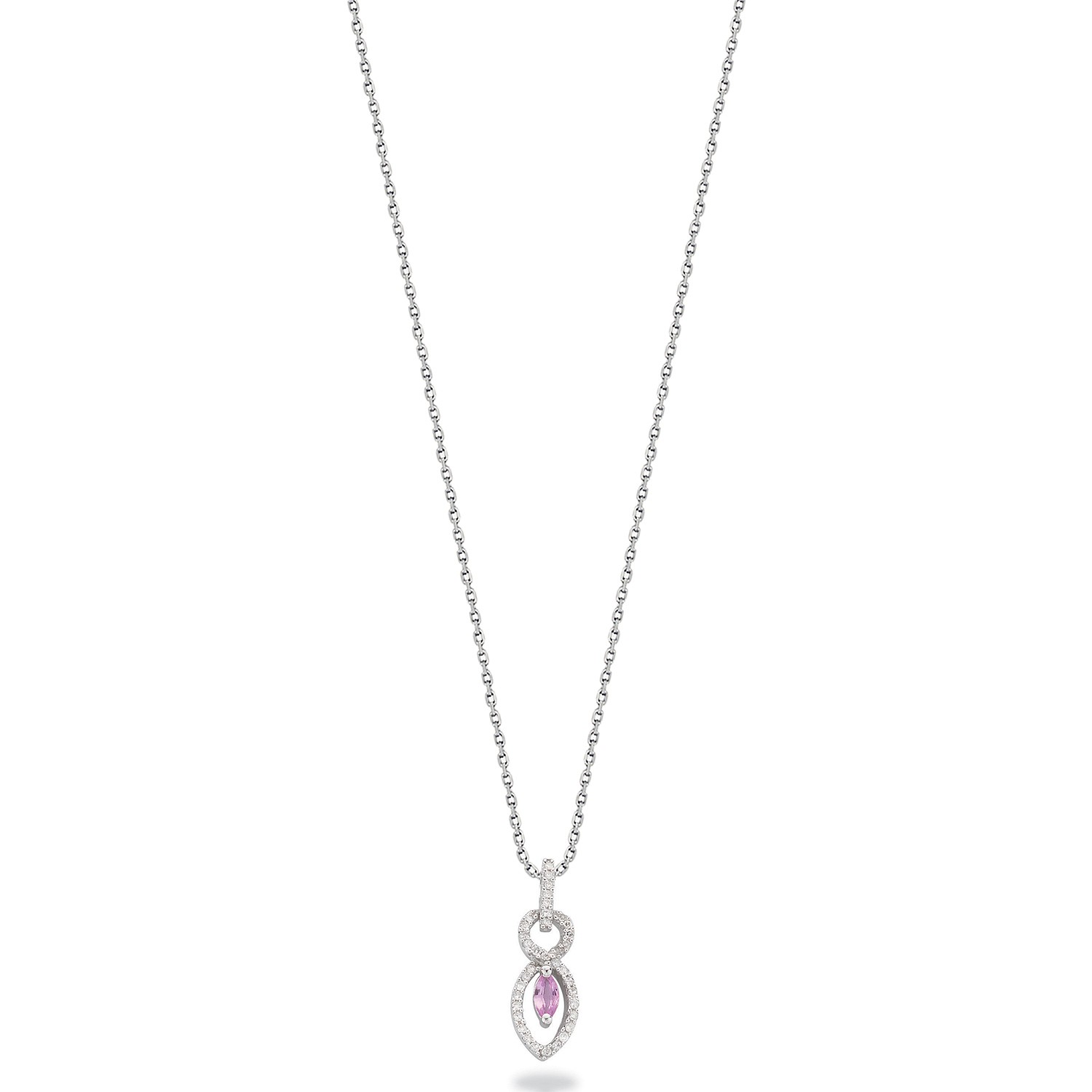 9ct White Gold 0.21ct Diamond and 0.27ct Pink Sapphire Drop Pendant with 18in/45cm Chain